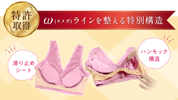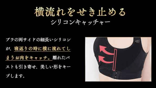 | 補正力 | ◎ | 特許をした滑り止めシートとハンモック 構造で、集めたバストが全然外に流れない し横になったり仰向けになってもバスト がっちりホールド! |