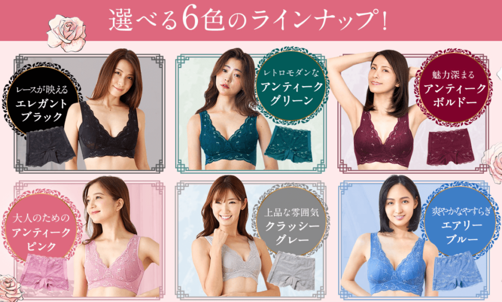 カップやアンダーサイズから6サイズから選べるようになっていて、しかも8色もあるから自分の好きなカラーを選べるのもポイント高いです♪